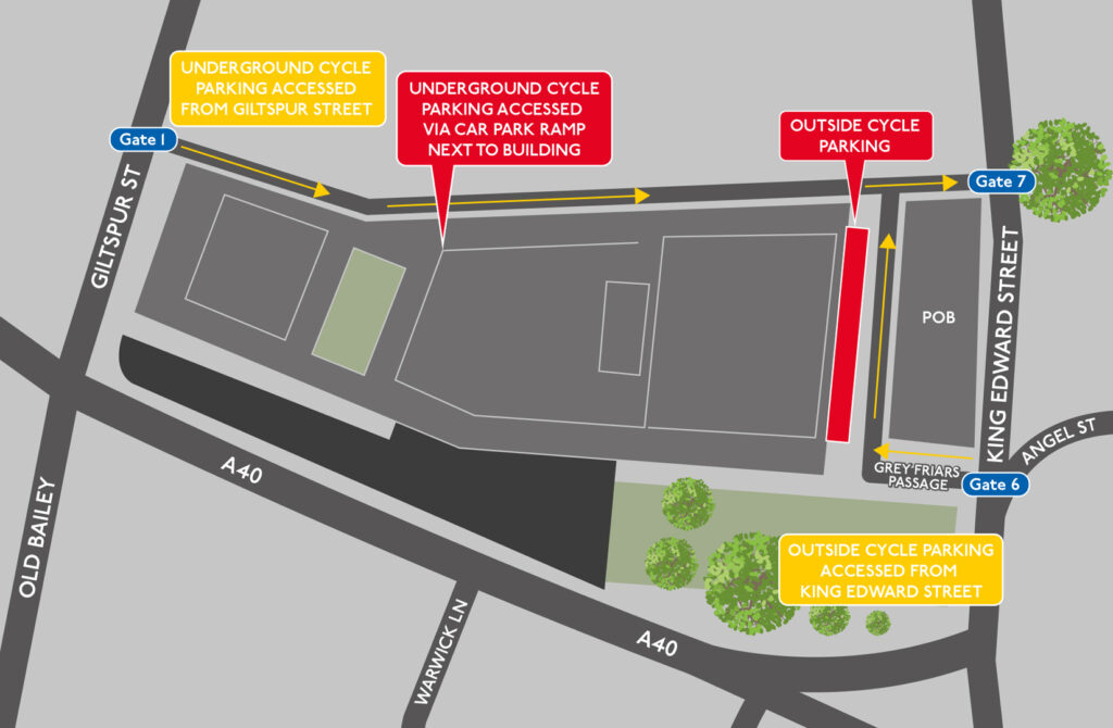 - There are 140 indoor spaces inside the basement car park, accessed from Giltspur Street and the car park ramp.